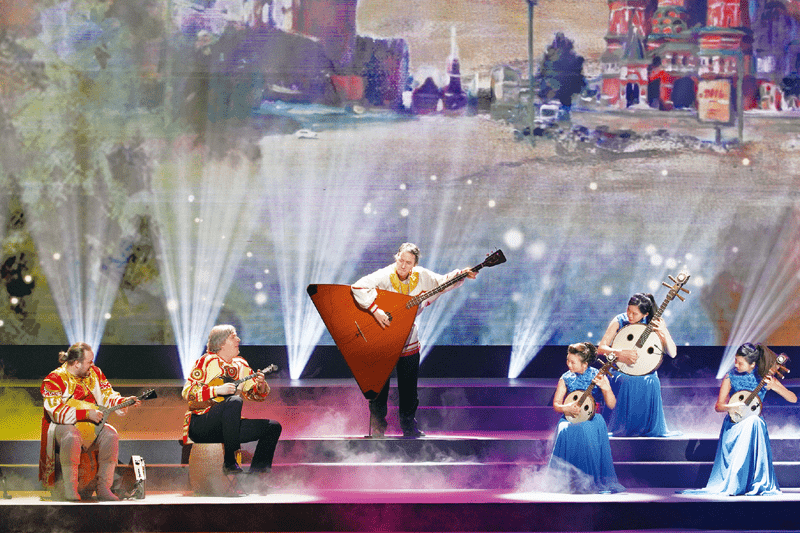2019年5月15日至22日,亞洲文明對(duì)話大會(huì)在北京舉行,大會(huì)舉辦了規(guī)模盛大的亞洲文化嘉年華和豐富多彩的亞洲文明周活動(dòng)。圖為5月18日,作為“亞洲文化展演”參演劇目,上海民族樂(lè)團(tuán)演員與奧西波夫俄羅斯民族樂(lè)團(tuán)演員共同演奏《相遇》。新華社記者 沈伯韓/攝