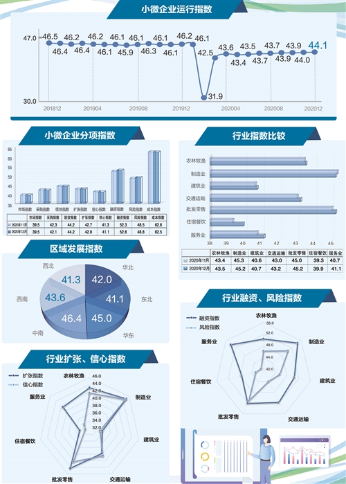 2020年12月份,“經(jīng)濟(jì)日報—中國郵政儲蓄銀行小微企業(yè)運(yùn)行指數(shù)”為44.1,較上月上升0.1個點。