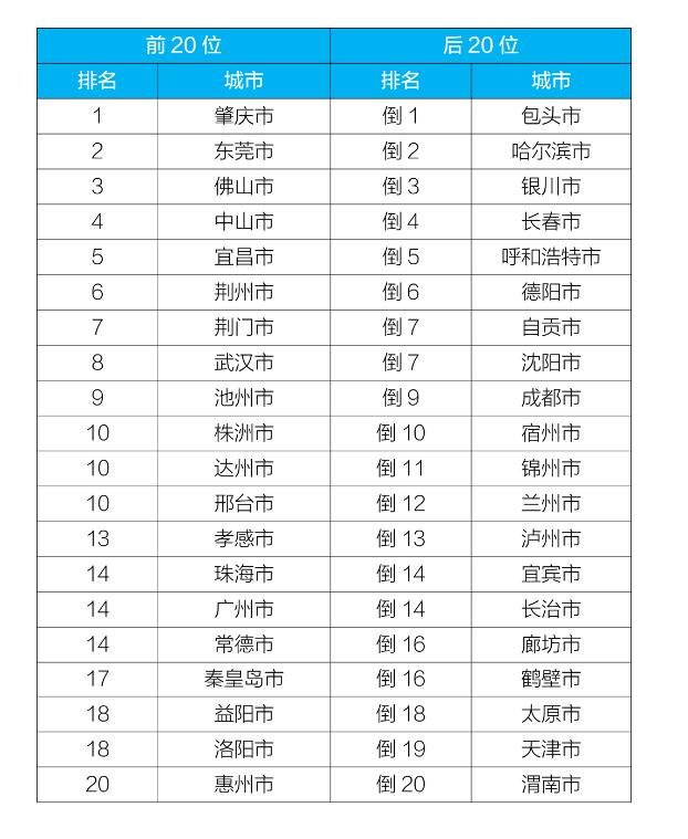 附表8:2020年1-12月168個(gè)重點(diǎn)城市排名前20位和后20位城市名單