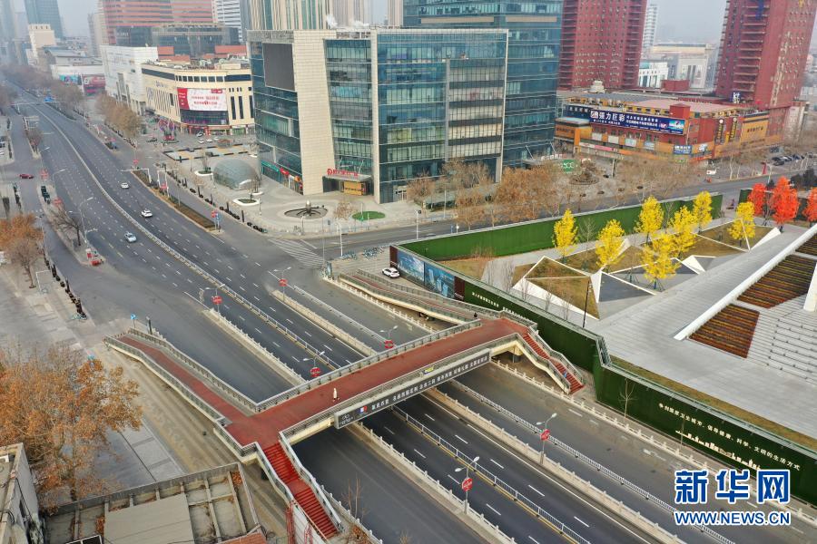 這是1月16日拍攝的石家莊中山西路(無人機照片)。