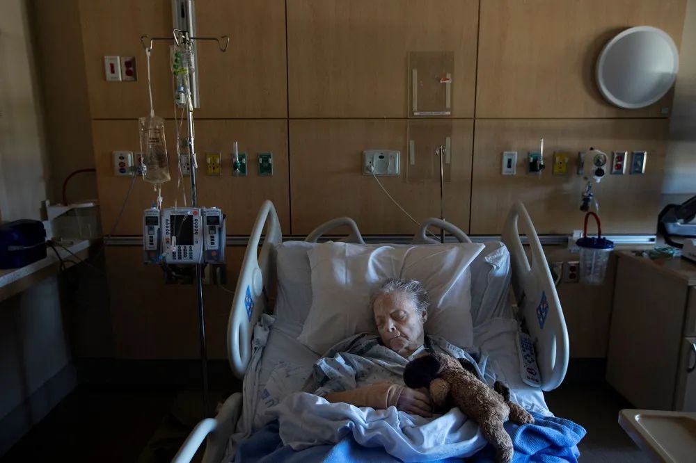 △美國加州米申山,在普羅維登斯圣十字醫(yī)療中心的老人。