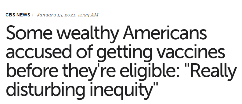 諷刺的是,據(jù)美國媒體披露,不少富人卻優(yōu)先接種上了疫苗。