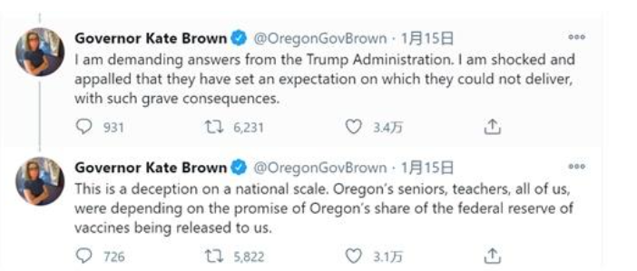 面對各州的指責(zé)和憤怒,聯(lián)邦政府僅僅將疫苗供應(yīng)不足歸咎于各州疫苗分發(fā)的混亂和對聯(lián)邦政府錯誤的預(yù)期。