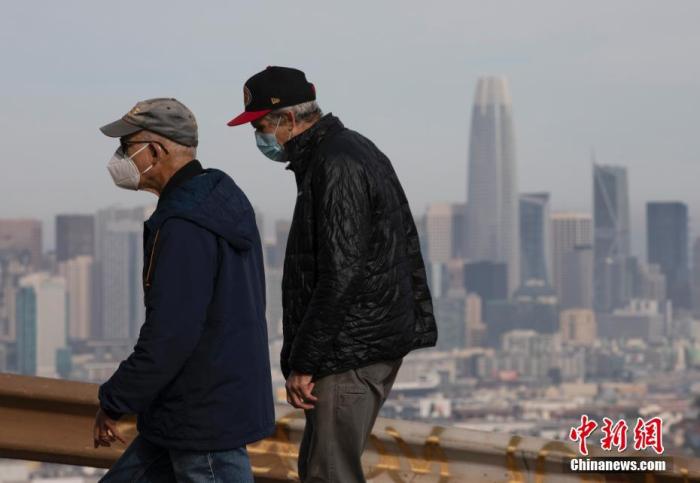當(dāng)?shù)貢r(shí)間1月1日,美國(guó)加州舊金山市民佩戴口罩在一處公園休閑。中新社記者 劉關(guān)關(guān) 攝