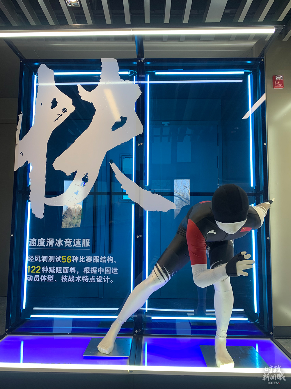 △首都體育館內(nèi)展示了多款訓(xùn)練服,體現(xiàn)“快護(hù)暖美”的設(shè)計(jì)理念。這是速度滑冰競(jìng)速服,經(jīng)風(fēng)洞測(cè)試56種比賽服結(jié)構(gòu)、122種減阻面料,根據(jù)中國(guó)運(yùn)動(dòng)員體型、技戰(zhàn)術(shù)特點(diǎn)設(shè)計(jì)而成。(總臺(tái)央視記者范一鳴拍攝)