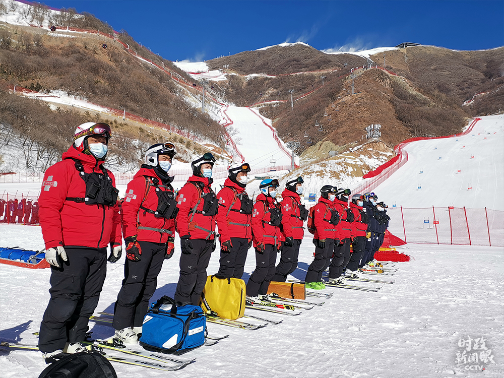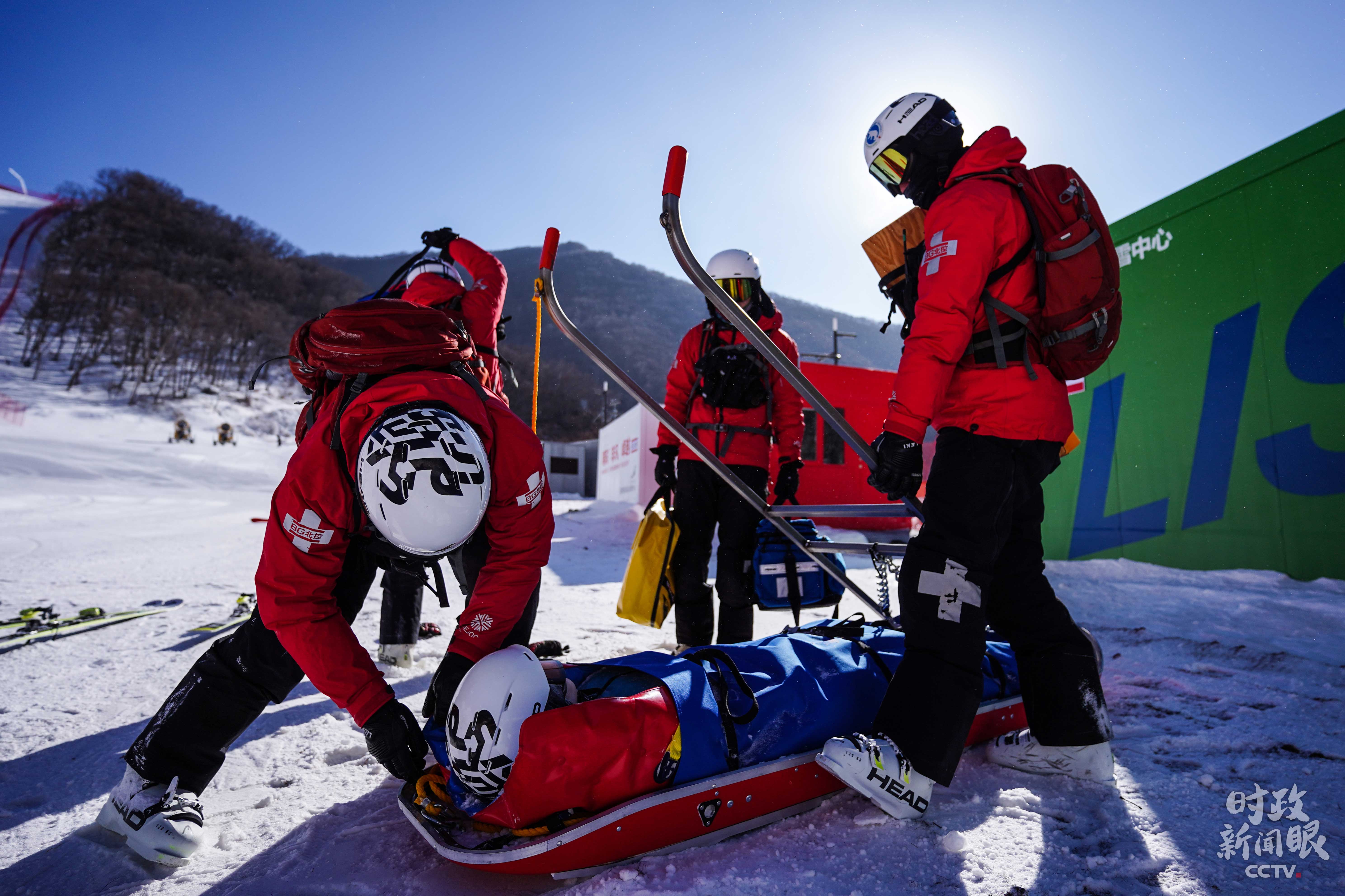△國(guó)家高山滑雪中心救援隊(duì)正在演練。(總臺(tái)央視記者楊立峰、國(guó)廣記者李晉拍攝)