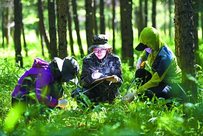 工作人員在河北塞罕壩機械林場采集數(shù)據(jù)。新華社發(fā)