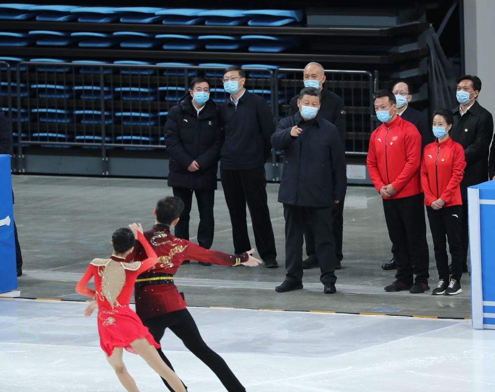 2021年1月18日,習近平在位于北京市海淀區(qū)的首都體育館考察調(diào)研,了解運動場館建設和運動員參賽備戰(zhàn)等情況,看望慰問運動員、教練員。新華社記者 姚大偉 攝