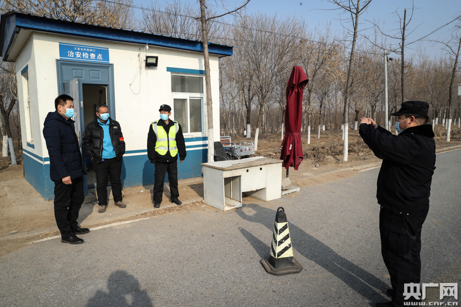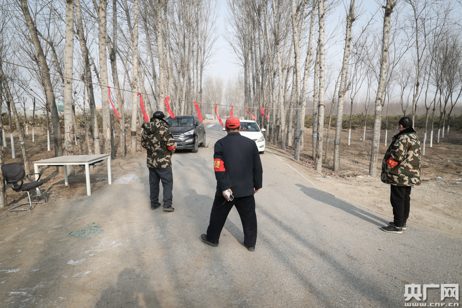 防疫人員楊福祿正在田家營(yíng)村西南卡口執(zhí)勤(央廣網(wǎng)記者 韓靖 攝)