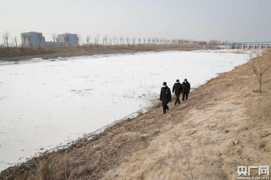 前不久的一場(chǎng)小雪讓永興河的冰面披上了銀裝,1月21日,禮賢鎮(zhèn)綜治辦的梁國(guó)東和同事正在河邊巡邏。這條河蜿蜒在北京與河北邊界,禮賢鎮(zhèn)在14公里的流域沿線設(shè)有4個(gè)卡口,采用物理隔離加人防的模式,按照三班倒進(jìn)行24小時(shí)值守。