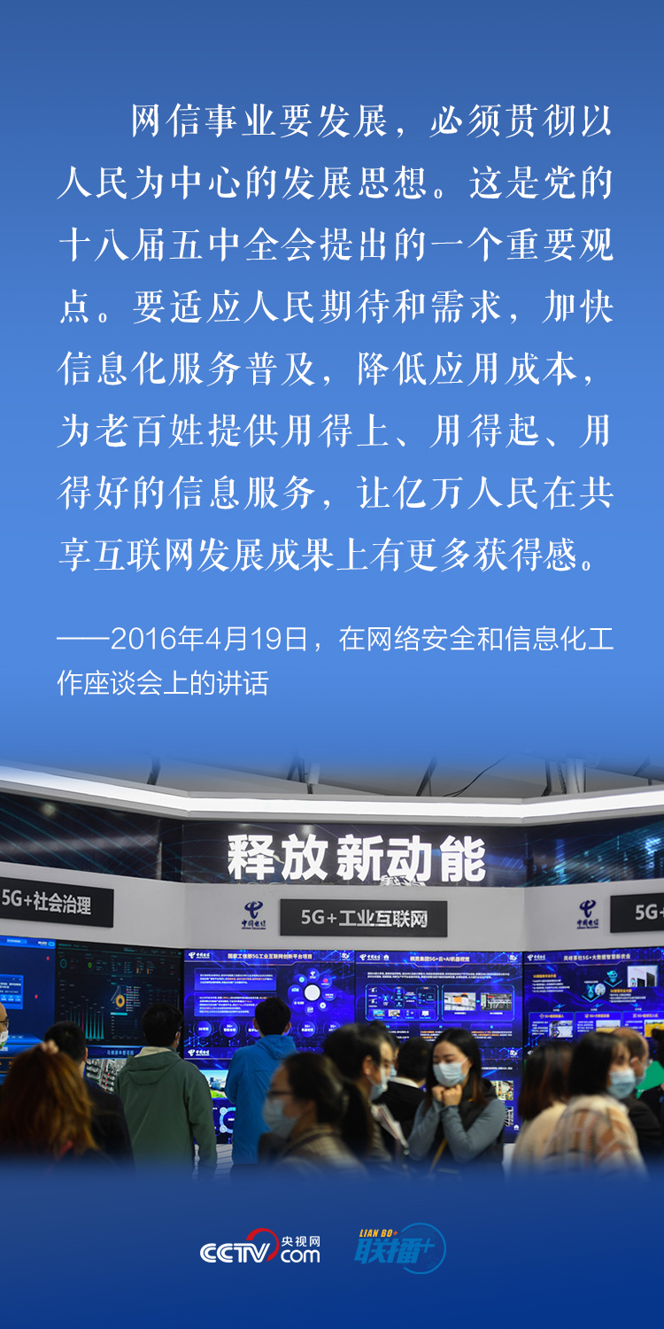 聯(lián)播+“網(wǎng)信事業(yè)要發(fā)展,必須貫徹以人民為中心的發(fā)展思想”,“讓互聯(lián)網(wǎng)更好造福人民”,“讓億萬人民在共享互聯(lián)網(wǎng)發(fā)展成果上有更多獲得感”……