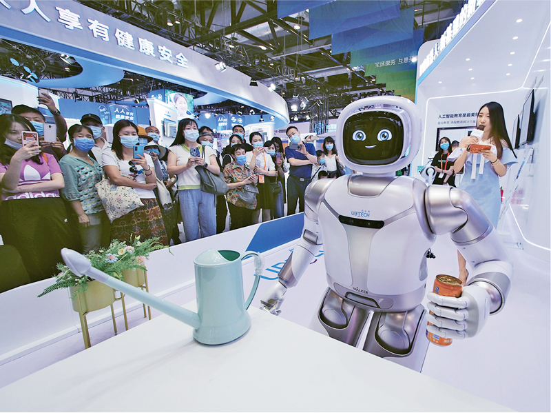2020年中國(guó)國(guó)際服務(wù)貿(mào)易交易會(huì)于9月4日至9日在北京舉行。這場(chǎng)盛會(huì)的舉行,展現(xiàn)了中國(guó)應(yīng)對(duì)疫情的成效、經(jīng)濟(jì)復(fù)蘇的溫度,更彰顯了持續(xù)深化改革、以開放促合作的誠(chéng)意和決心。圖為9月9日,參觀者在服貿(mào)會(huì)觀看智能家居機(jī)器人的表演。 人民圖片 杜建坡/攝