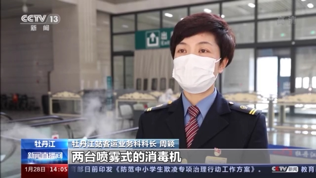 牡丹江站客運業(yè)務科科長 周穎:我們在進站扶梯處增設了兩臺噴霧式的消毒機,由原來的人工定時對扶梯消毒變成了現(xiàn)在的實時消殺。