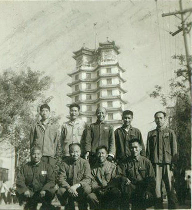 △ 翻拍的1971年部分建設者在二七紀念塔前的合照(鄭州二七紀念館供圖)