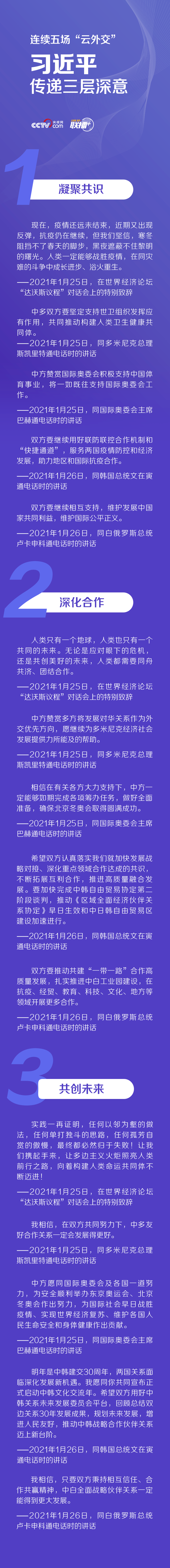 聯(lián)播+1月25日以來,習近平主席再次開啟繁忙的“云外交”模式,先后在北京以視頻方式出席世界經(jīng)濟論壇“達沃斯議程”對話會,同多米尼克總理斯凱里特、國際奧委會主席巴赫、韓國總統(tǒng)文在寅、白俄羅斯總統(tǒng)盧卡申科通電話。
