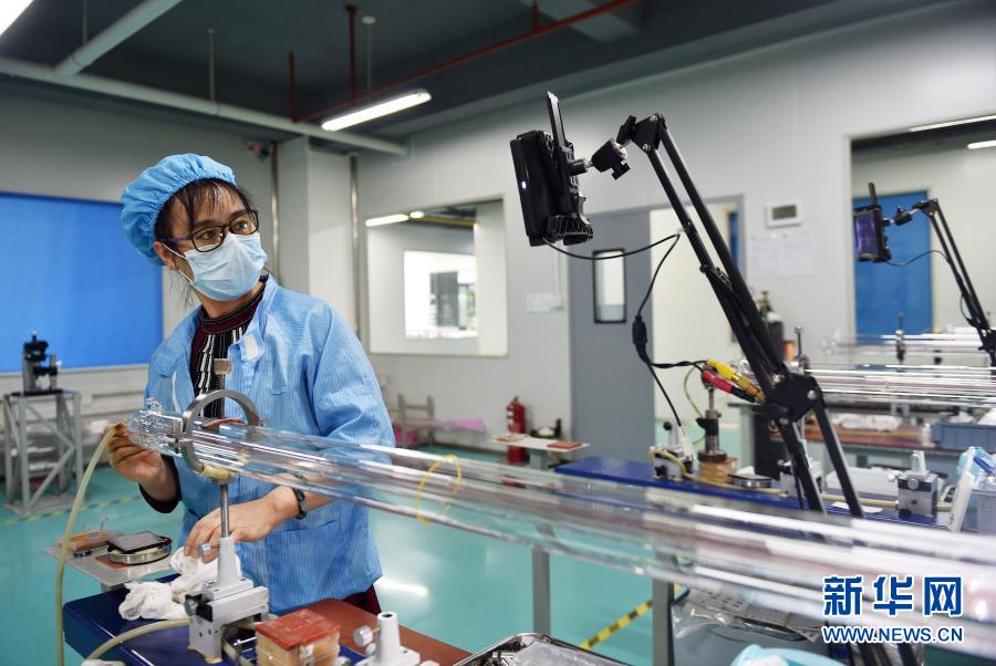 2020年4月13日,吉林省啟動以“營造更好發(fā)展環(huán)境,支持民營企業(yè)改革發(fā)展”為主題的服務(wù)企業(yè)周。這是吉林省一家民營企業(yè)的工人在生產(chǎn)激光管。新華社記者 林宏 攝
