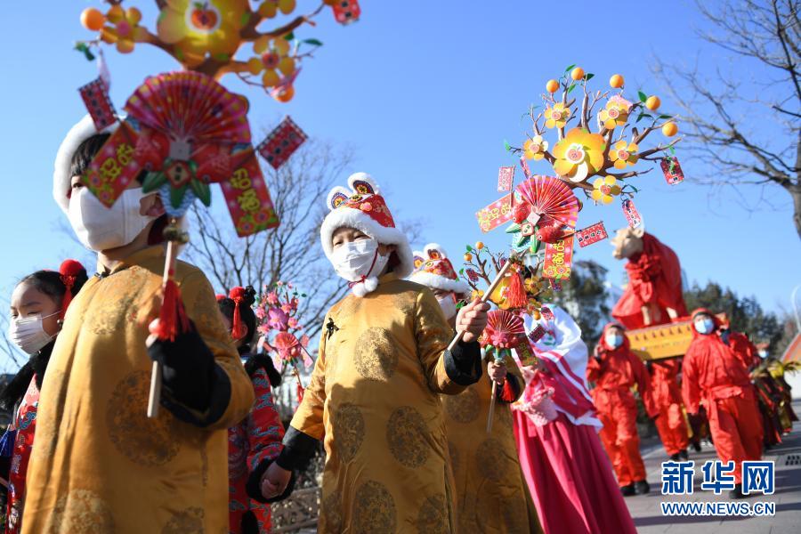 立春將至,北京東城區(qū)建國門街道在古觀象臺舉辦“風車迎春,鞭打春!泵袼谆顒,迎接春天的到來。