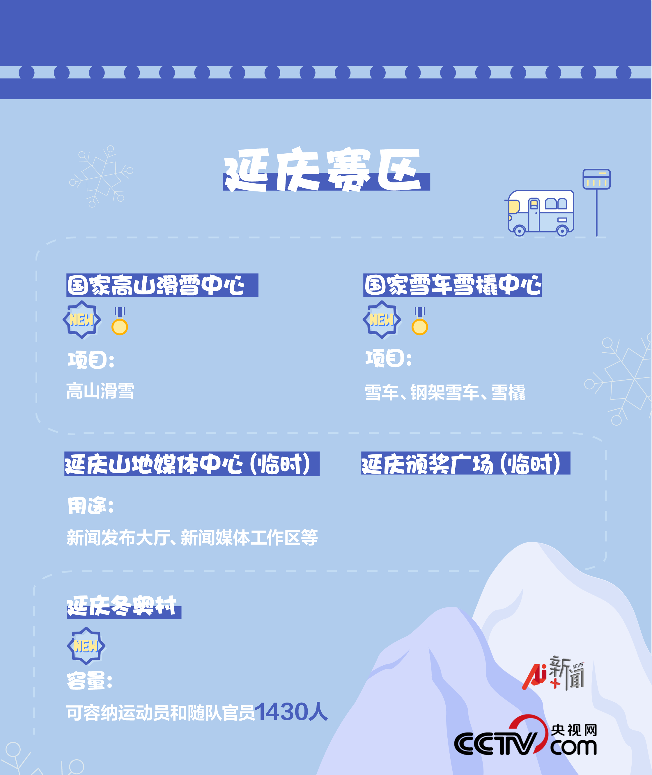 延慶賽區(qū)位于北京中心城的西北方向的延慶區(qū),共有5個競賽和非競賽場館,其中3個為新建場館、2個為臨時場館,將進行3個大項(高山滑雪、雪車、雪橇)、4個分項(高山滑雪、雪車、鋼架雪車、雪橇)、20個小項的比賽。