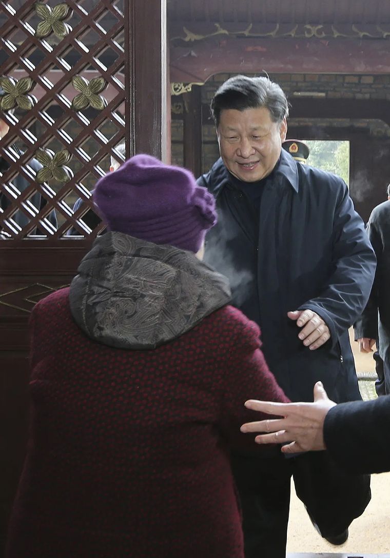 ↑2016年2月2日,習(xí)近平在江西井岡山市茅坪鄉(xiāng)神山村給鄉(xiāng)親們拜年。