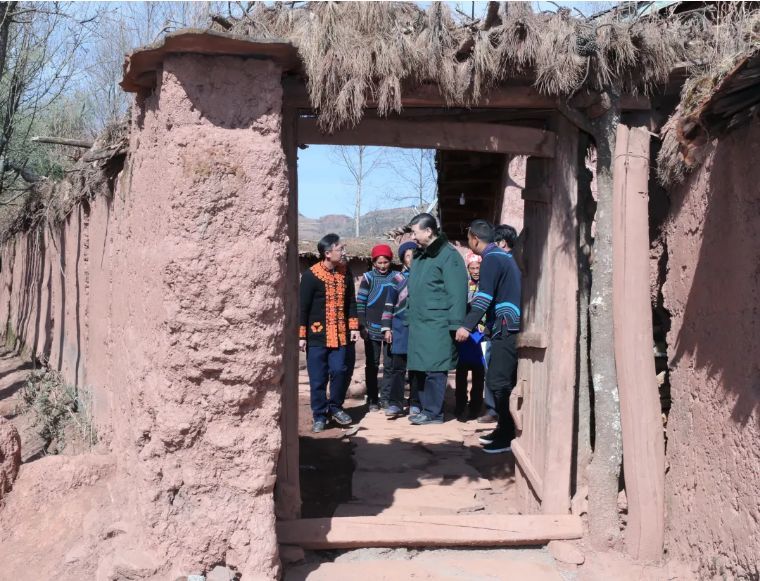 ↑2020年1月19日,習(xí)近平在云南騰沖市清水鄉(xiāng)三家村中寨司莫拉佤族村村民李發(fā)順家察看,了解居住環(huán)境。