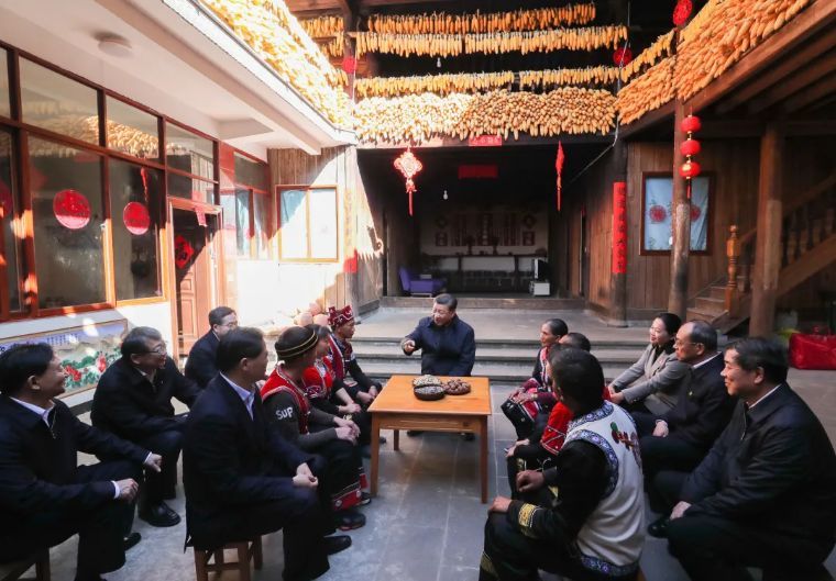 ↑2020年1月19日,習(xí)近平在云南騰沖市清水鄉(xiāng)三家村中寨司莫拉佤族村,同村民李發(fā)順一家聊家常,詳細(xì)詢問脫貧情況。