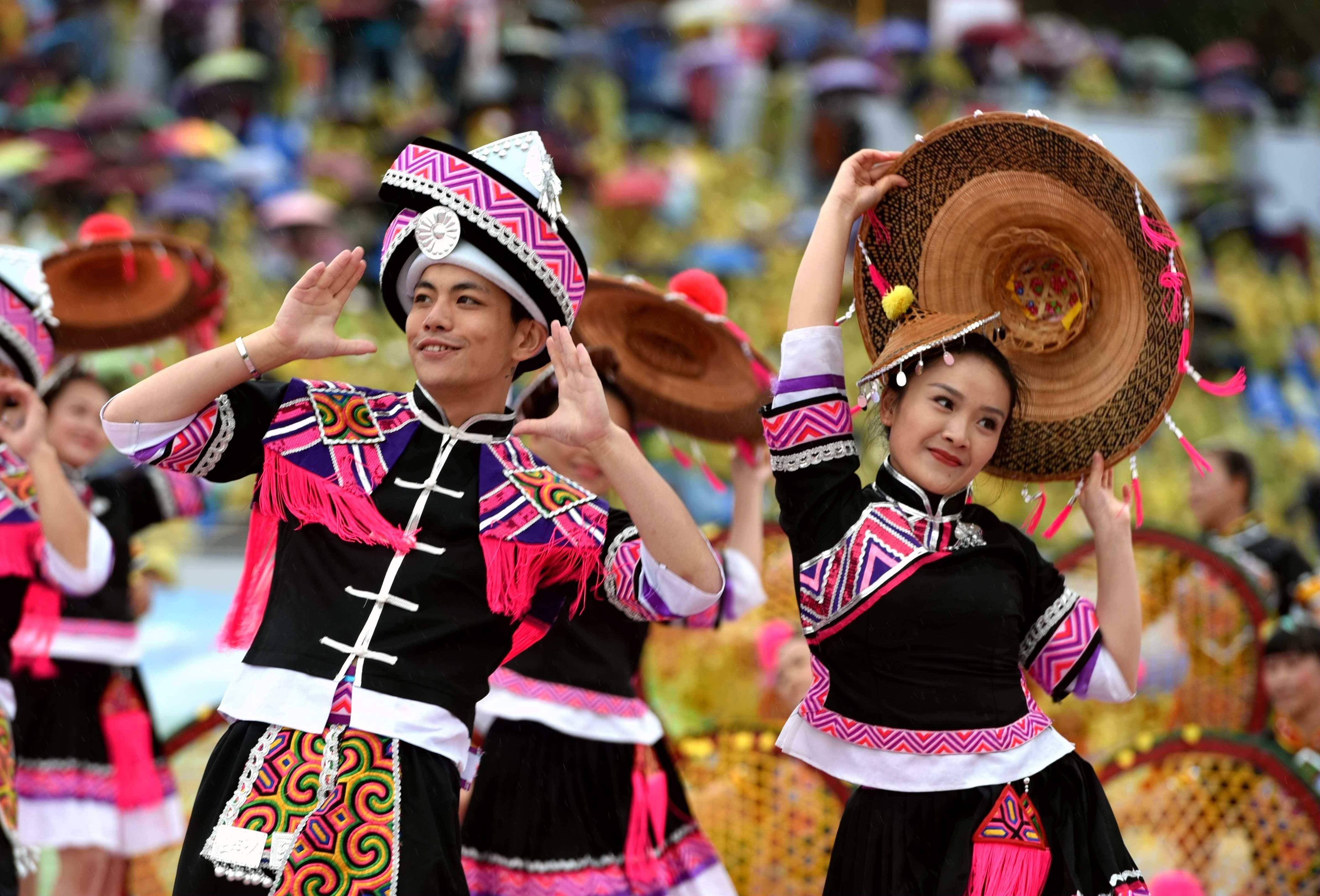 △2020年5月,廣西環(huán)江毛南族自治縣退出貧困縣序列,毛南族實現(xiàn)整族脫貧。這是2017年11月18日,廣西環(huán)江毛南族自治縣群眾載歌載舞,喜迎30年縣慶。