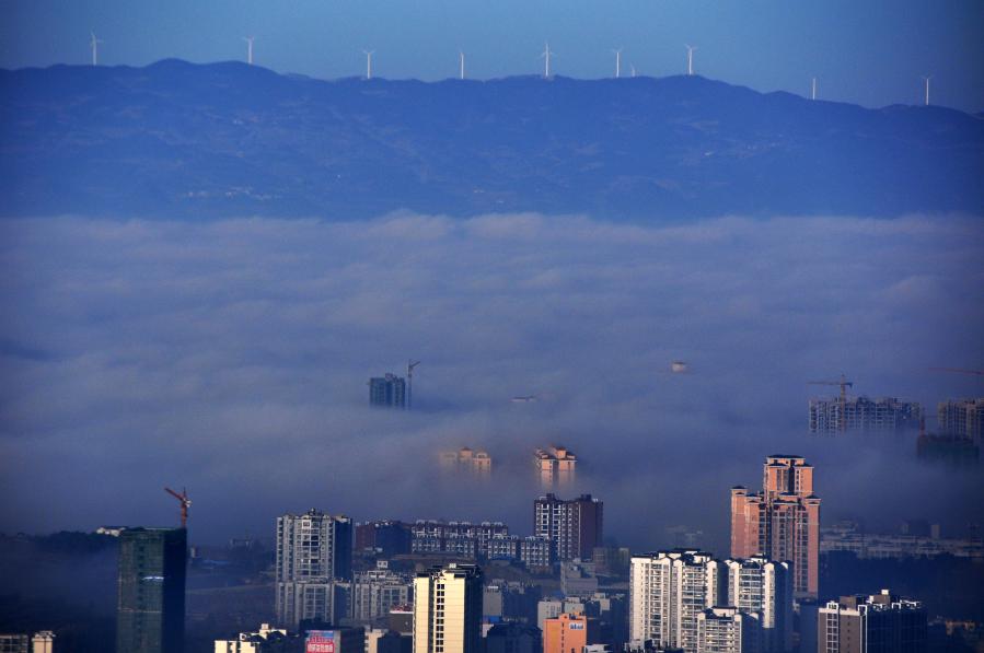 畢節(jié)市威寧彝族回族苗族自治縣霧海景觀。(新華社記者楊文斌 2016年1月5日 攝)