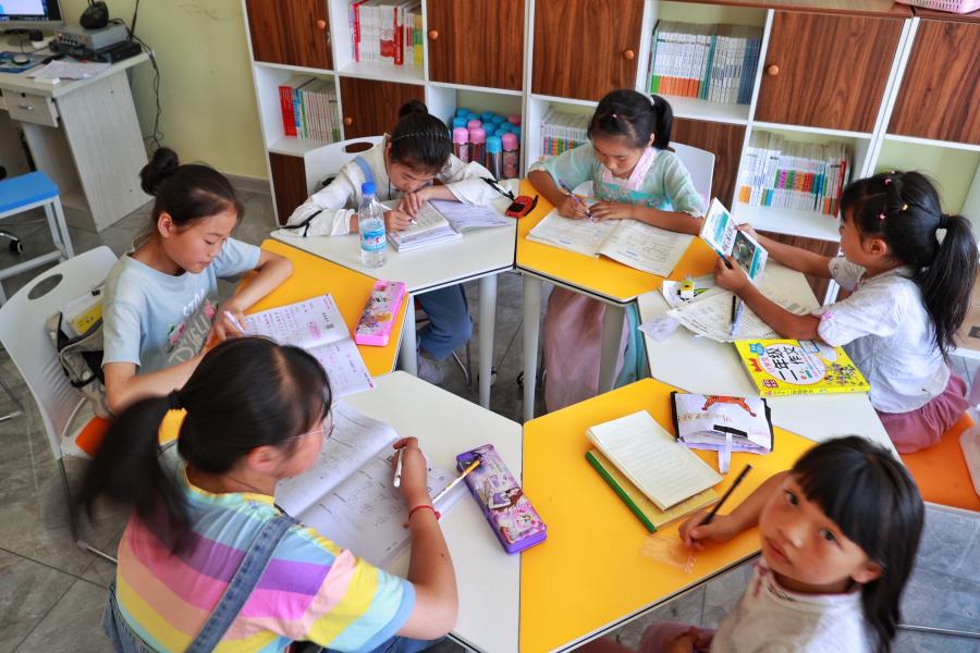 小朋友在畢節(jié)市七星關(guān)區(qū)柏楊林易地扶貧搬遷安置點長幼日間托養(yǎng)照料中心內(nèi)學(xué)習(xí)。(新華社記者劉續(xù) 2020年8月3日 攝)