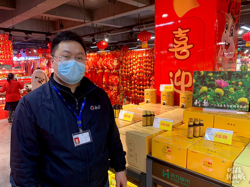 為了滿足消費者就地過年的需求,超市主要增加了本地的特色產(chǎn)品。店長黃東告訴《時政新聞眼》,天麻、靈芝、杜仲組成的“貴州三寶”是這些天的熱銷商品。黃東是吉林人,他說自己也積極響應(yīng)號召,今年留在貴州過年。