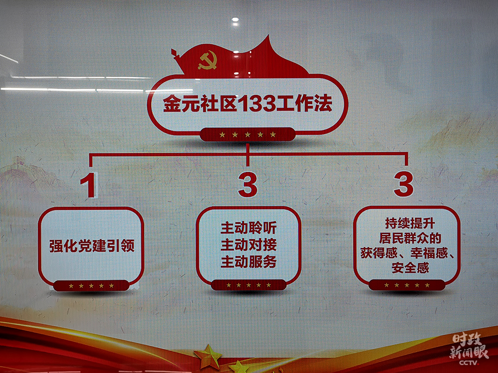 △金元社區(qū)的“133工作法”,“1”是強化黨建引領(lǐng),第一個“3”是社區(qū)工作要“主動聆聽、主動對接、主動服務(wù)”。(總臺央視記者楊立峰拍攝)