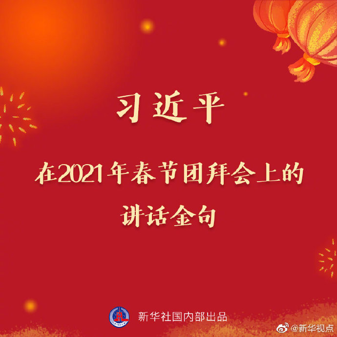 中共中央、國務(wù)院10日上午在人民大會堂舉行2021年春節(jié)團(tuán)拜會。習(xí)近平發(fā)表講話。戳圖讀金句↓