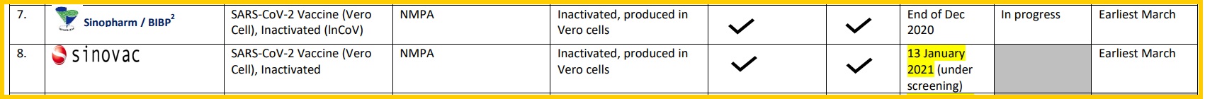 根據(jù)世衛(wèi)組織疫苗評(píng)估文件,世衛(wèi)組織已于去年12月底和今年1月13日接受了中國(guó)國(guó)藥集團(tuán)和科興公司提供的兩種新冠疫苗的評(píng)估材料。