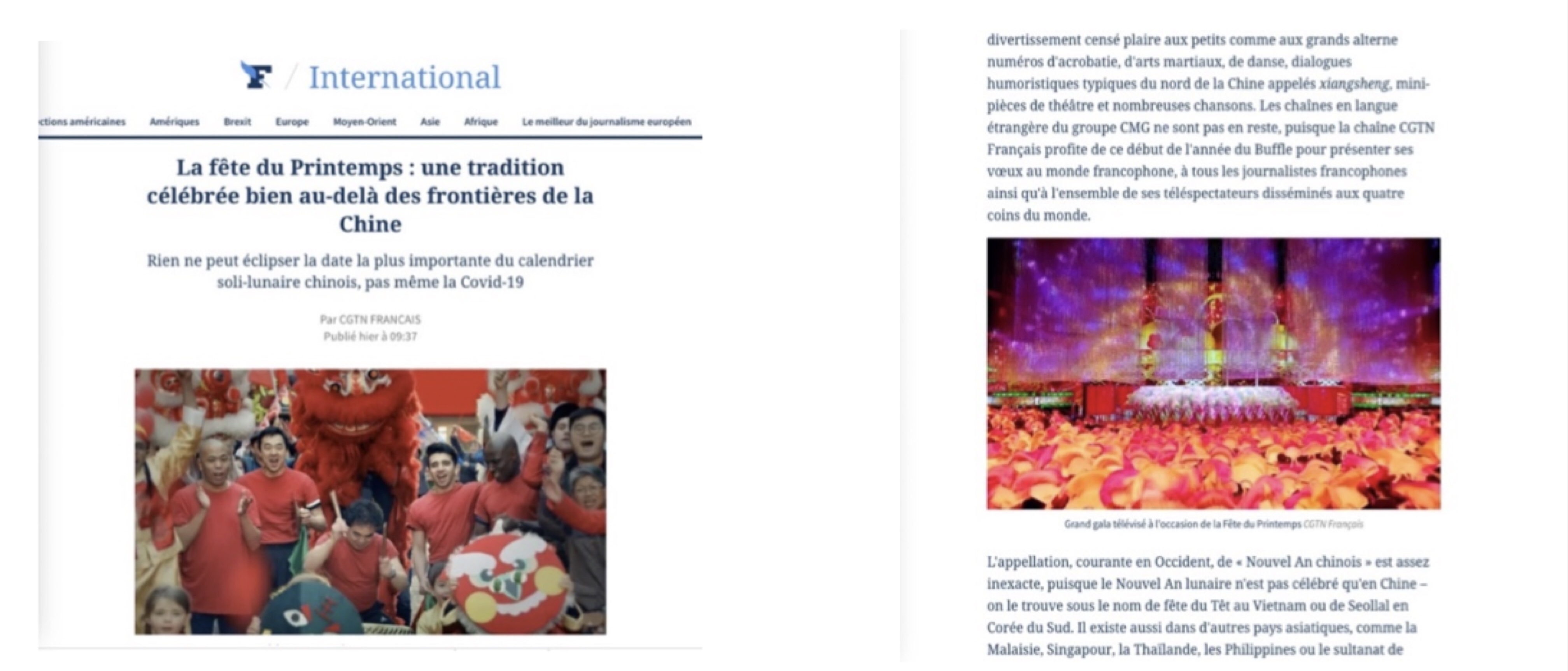 法國《費加羅報》在其網(wǎng)站刊發(fā)特稿《春節(jié):超越國界的歡慶》。文章稱,春節(jié)不僅是中國最重要的節(jié)日,還融入了西方文化,在全世界當代流行文化中占據(jù)重要地位。文章特地介紹了總臺春晚,稱贊春晚已經(jīng)成為世界上收看次數(shù)最多的電視節(jié)目,是中國春節(jié)不可或缺的精神大餐,是一場老少咸宜的大聯(lián)歡。