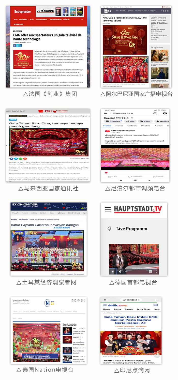法國《創(chuàng)業(yè)》媒體集團網(wǎng)站、德國首都電視臺、阿爾巴尼亞國家廣播電視臺官網(wǎng)、馬來西亞國家通訊社、尼泊爾都市調(diào)頻電臺、土耳其經(jīng)濟觀察者網(wǎng)、斯里蘭卡國家電視臺、泰國Nation電視臺、印尼點滴網(wǎng)等媒體高度評價春晚創(chuàng)新采用前沿技術(shù)手段,充分展示了總臺“5G+4K/8K+AI”發(fā)展的最新成果。