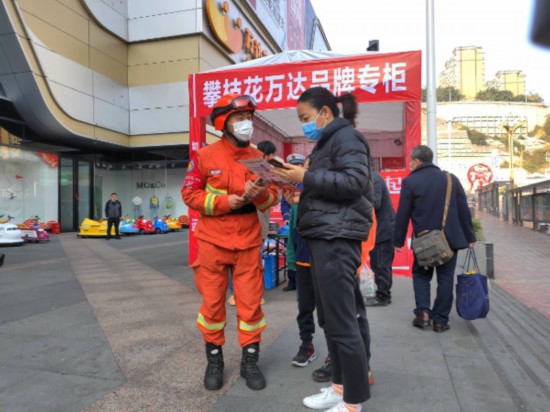 吃過早飯,消防員郭鵬就連忙帶領(lǐng)班級人員調(diào)試好滅火裝備,準(zhǔn)備好防火宣傳用品。他們今天的任務(wù)是前往攀枝花市萬達廣場開展防火宣傳。