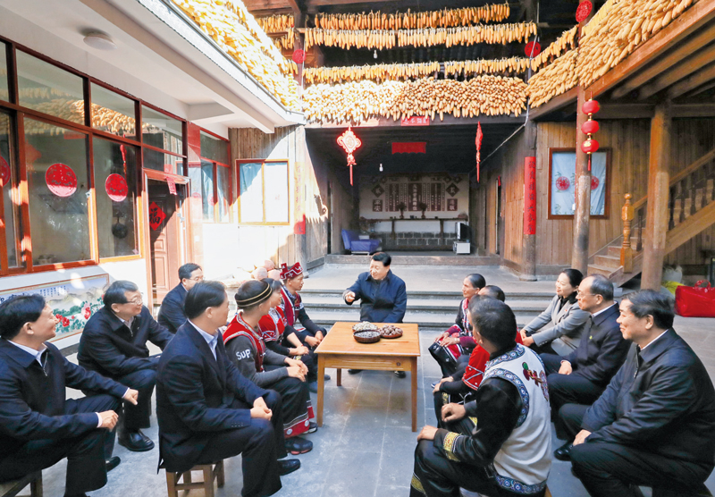 2020年1月19日至21日,中共中央總書記、國(guó)家主席、中央軍委主席習(xí)近平來(lái)到云南,看望慰問(wèn)各族干部群眾,向全國(guó)人民致以新春祝福。這是19日下午,習(xí)近平在騰沖市清水鄉(xiāng)三家村中寨司莫拉佤族村,同村民李發(fā)順一家聊家常,詳細(xì)詢問(wèn)脫貧情況。 新華社記者 鞠鵬/攝