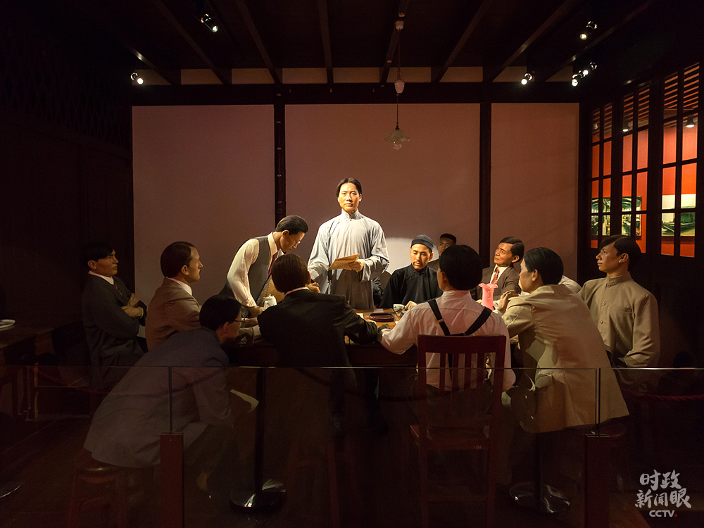中共一大會址紀(jì)念館,還原“一大會議”現(xiàn)場的蠟像展覽。