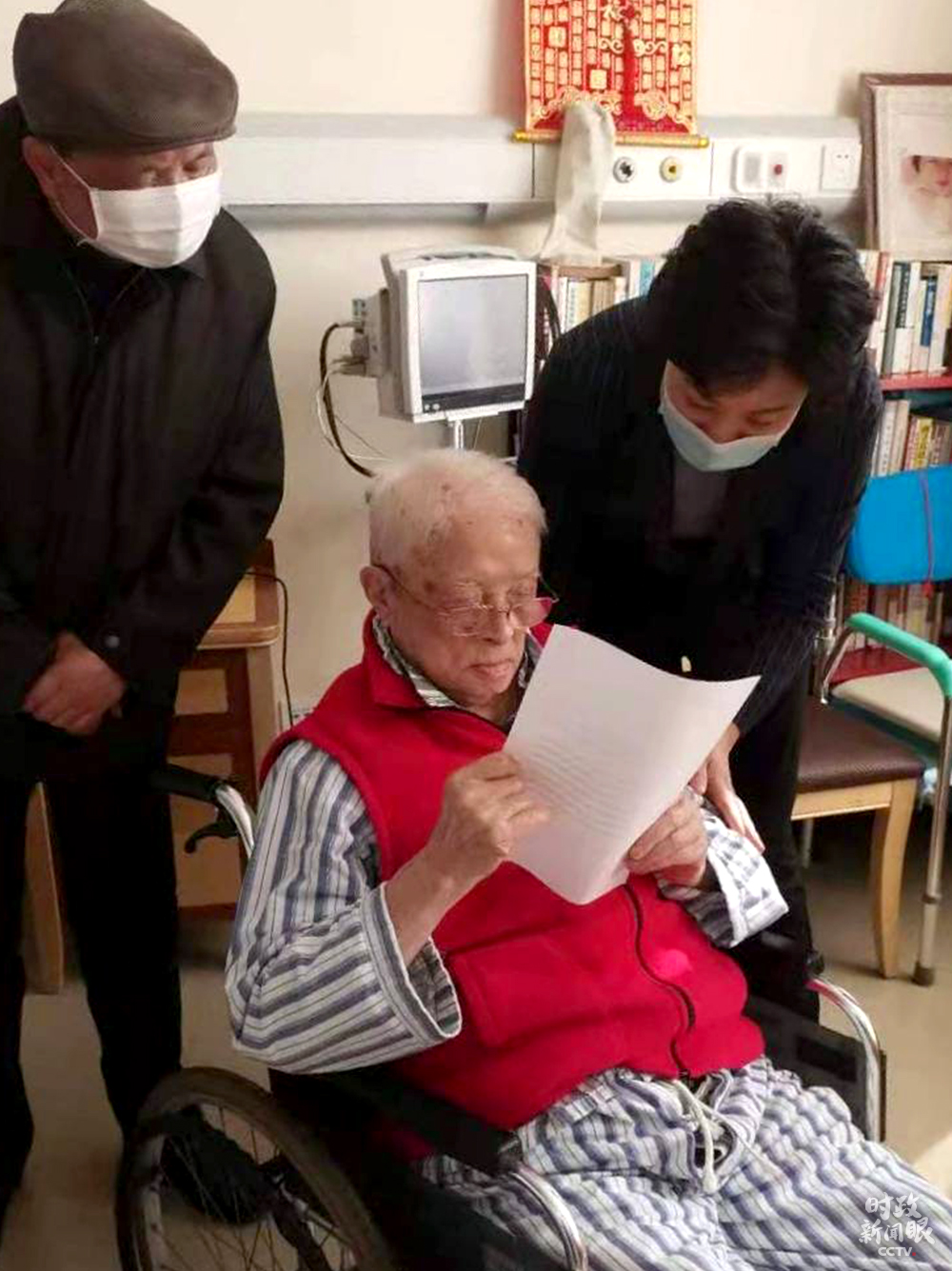 △2月18日,習(xí)近平總書記給上海市新四軍歷史研究會的百歲老戰(zhàn)士們回信,感佩他們期頤之年仍心系黨史宣傳教育。新四軍老戰(zhàn)士施平是40余位寫信人之一。(上海市新四軍歷史研究會供圖)