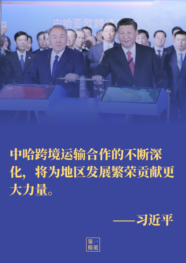 2017年6月8日,習(xí)近平主席在訪問(wèn)哈薩克斯坦期間出席中哈亞歐跨境運(yùn)輸視頻連線儀式,現(xiàn)場(chǎng)先后連線中哈連云港物流合作基地和“霍爾果斯-東大門”經(jīng)濟(jì)特區(qū)無(wú)水港。