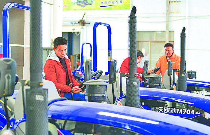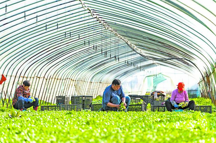 上圖 2月18日,位于安徽省合肥市肥東縣撮鎮(zhèn)鎮(zhèn)的安徽一元菜生態(tài)有限公司蔬菜基地內(nèi),工人忙著采收、搬運蔬菜。阮雪楓攝 左圖 2月18日,江西省贛州市章貢區(qū)華星源農(nóng)機有限公司,農(nóng)戶正在選購農(nóng)機。胡江濤攝