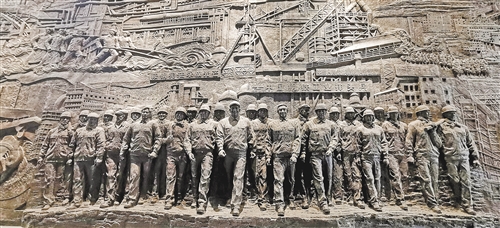 鞍鋼集團(tuán)博物館大廳內(nèi)的勞模群像浮雕。經(jīng)濟(jì)日報-中國經(jīng)濟(jì)網(wǎng)記者 孫潛彤?dāng)z