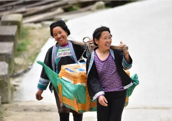 ↑2020年3月25日,廣西融水苗族自治縣扶貧部門將11000斤螺苗送到桂黔烏英苗寨,免費(fèi)發(fā)放給34戶脫貧戶和貧困戶。這是村民將螺苗抬往田間,準(zhǔn)備投放。烏英苗寨位于桂黔交界的大苗山深處,交通不便,土地匱乏,環(huán)境惡劣。近年來,當(dāng)?shù)丶哟髮?duì)產(chǎn)業(yè)發(fā)展扶持力度,引導(dǎo)群眾發(fā)展木耳、水果、禾花魚、土豬等種養(yǎng)產(chǎn)業(yè),增加收入,順利實(shí)現(xiàn)脫貧。