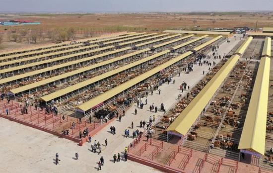 ↑位于大興安嶺南麓集中連片特困地區(qū)的內(nèi)蒙古興安盟科爾沁右翼中旗,過去沒有像樣的產(chǎn)業(yè),是內(nèi)蒙古脫貧攻堅(jiān)最難啃的“硬骨頭”之一。近年,科右中旗理清發(fā)展思路:吃生態(tài)飯、做牛文章、念文旅經(jīng),不僅甩掉了國(guó)家級(jí)貧困旗的窮帽子,更走出了一條綠意盈盈的發(fā)展新路。這是科右中旗肉牛交易市場(chǎng)(2020年5月1日攝,無人機(jī)照片)。