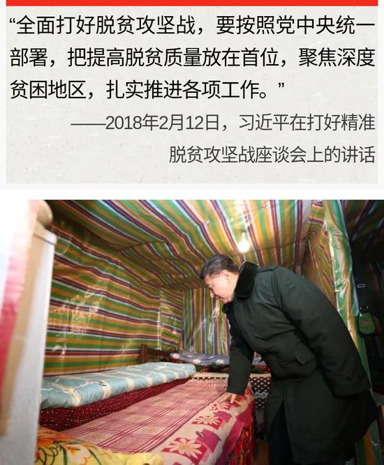 ↑2018年2月10日至13日,在中華民族傳統(tǒng)節(jié)日農(nóng)歷春節(jié)來臨之際,習(xí)近平來到四川考察調(diào)研,看望慰問各族干部群眾,向全國(guó)各族人民致以美好的新春祝福。這是2月11日上午,習(xí)近平在涼山彝族自治州昭覺縣三岔河鄉(xiāng)三河村貧困戶吉好也求家中看望。