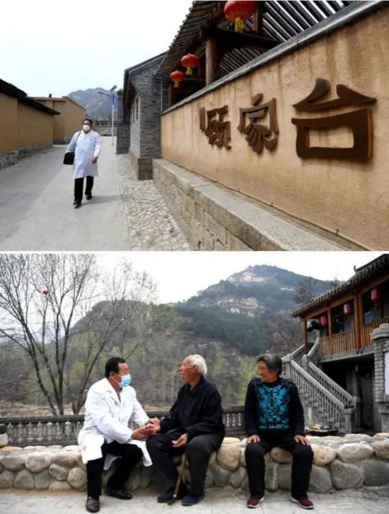↑近年來,河北省阜平縣積極推進(jìn)健康扶貧,在基本醫(yī)保、大病保險(xiǎn)、醫(yī)療救助“三重保障線”基礎(chǔ)上,財(cái)政投入資金,為困難群眾提供防貧保險(xiǎn)。同時(shí),鄉(xiāng)鎮(zhèn)衛(wèi)生院、村衛(wèi)生室聯(lián)合組隊(duì),定期上門問診,保障困難群眾享有基本醫(yī)療衛(wèi)生服務(wù)。上圖:河北阜平縣龍泉關(guān)鎮(zhèn)顧家臺(tái)村村醫(yī)薄利走在出診的路上(2020年4月15日攝);下圖:在河北阜平縣龍泉關(guān)鎮(zhèn)駱駝灣村,村醫(yī)霍建國(guó)為村民把脈(2020年4月15日攝)。