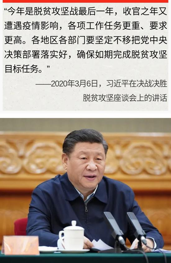 ↑2020年3月6日,習(xí)近平在北京出席決戰(zhàn)決勝脫貧攻堅(jiān)座談會(huì)并發(fā)表重要講話。