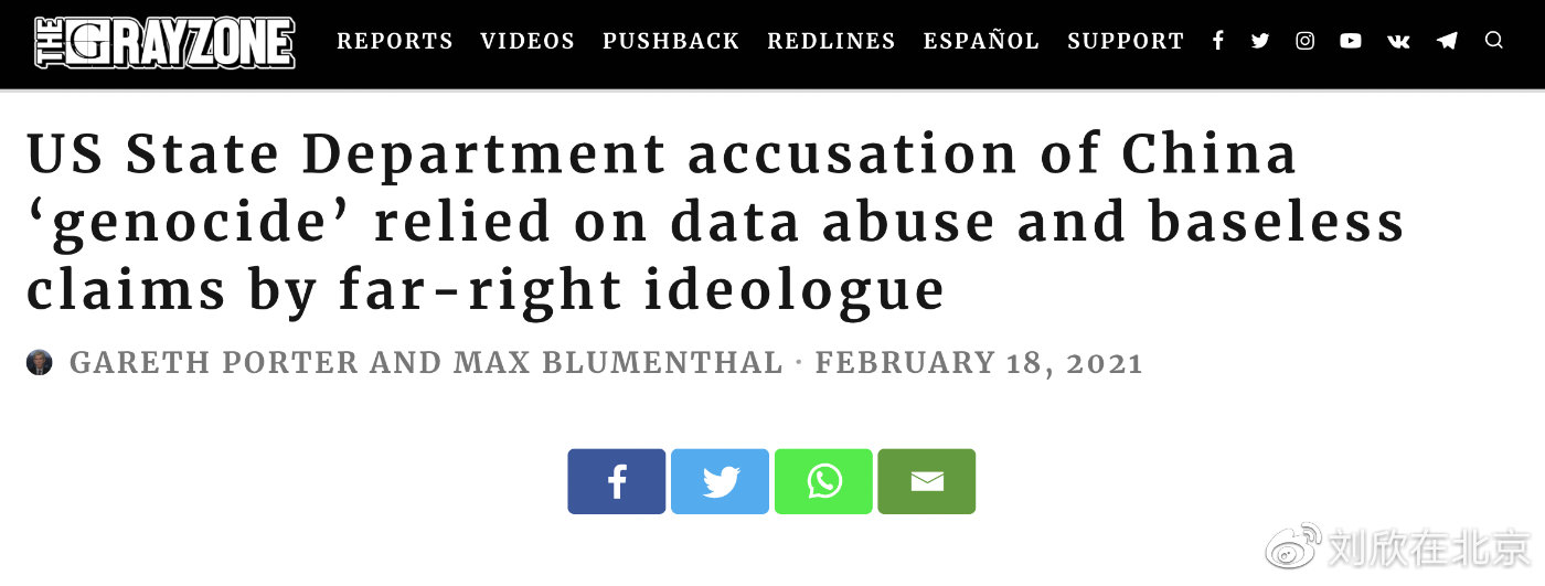 2021年2月18日,美國獨(dú)立網(wǎng)站“灰色地帶(The Grayzone)”發(fā)表報(bào)告,題為《美國國務(wù)院對(duì)中國“種族滅絕”的指控基于數(shù)據(jù)濫用和極右翼分子毫無根據(jù)的斷言》。報(bào)告駁斥了德國人鄭國恩對(duì)中國“種族滅絕”的指控,稱鄭國恩為“右翼宗教極端分子”,其相關(guān)研究是公然的數(shù)據(jù)濫用和捏造。24日,該網(wǎng)站主編馬克斯·布盧門撒爾(Max Blumenthal)接受了CGTN主持人劉欣的獨(dú)家專訪。他告訴劉欣,通過“法醫(yī)式”地剖析鄭國恩的“報(bào)告”,可以發(fā)現(xiàn)他的結(jié)論不堪一擊,甚至可笑至極。然而,這些煽動(dòng)性的“結(jié)論”卻被美西方政府、議員、主流媒體大肆引用,為什么?這種政治操弄目的何在,會(huì)帶來什么惡果?
