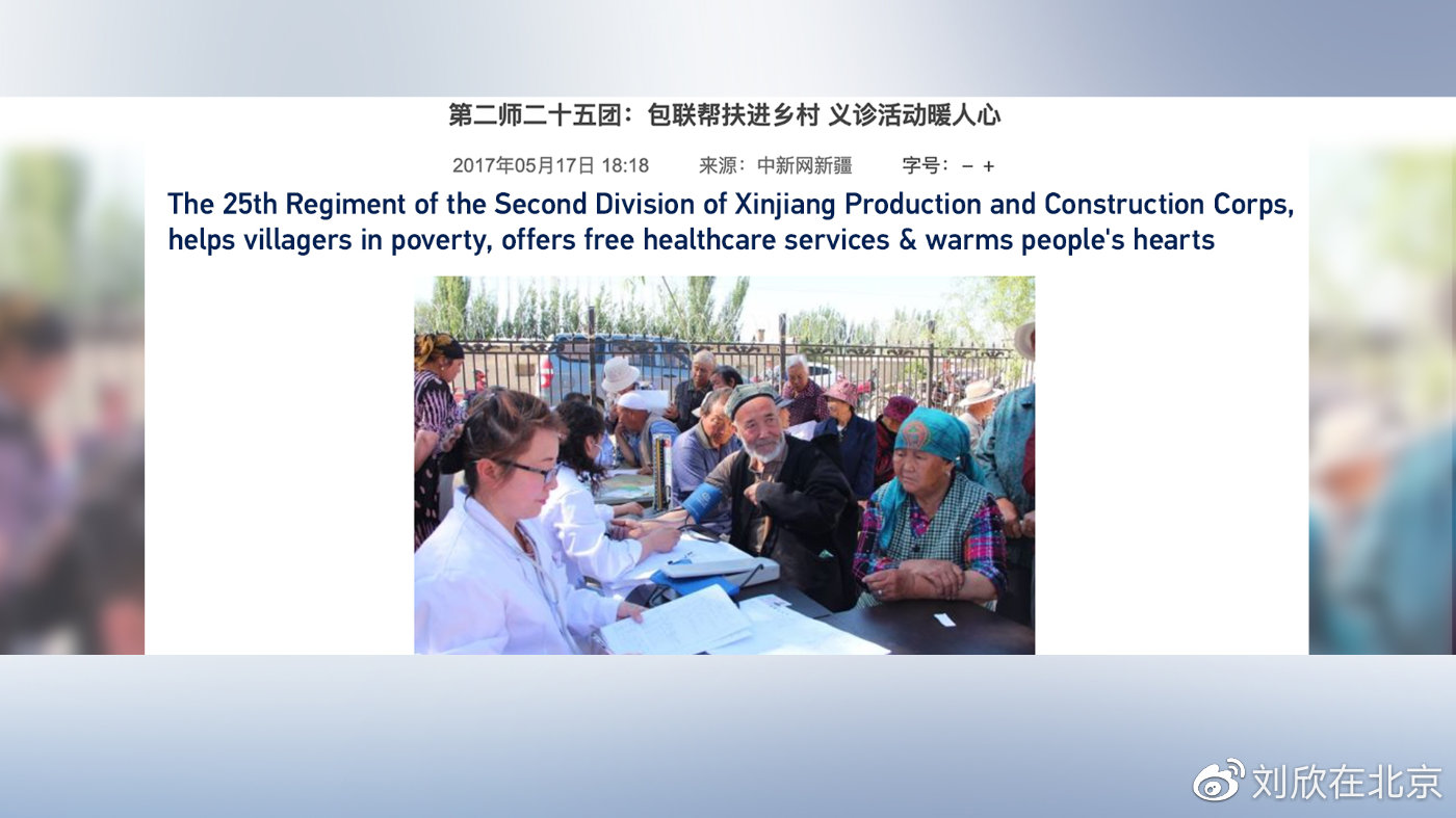但是,你看一看照片,照片中居于中心位置的人其實(shí)都上了年紀(jì),不像是處于育齡的人群。原來這張照片取自一個(gè)中國新聞網(wǎng)站,是關(guān)于新疆某地的扶貧項(xiàng)目,當(dāng)?shù)厝嗣衩赓M(fèi)進(jìn)行身體檢查和咨詢。這說明了什么問題?有沒有可能由于他不懂漢語,或者他從來沒有去過新疆,所以搞錯(cuò)了?