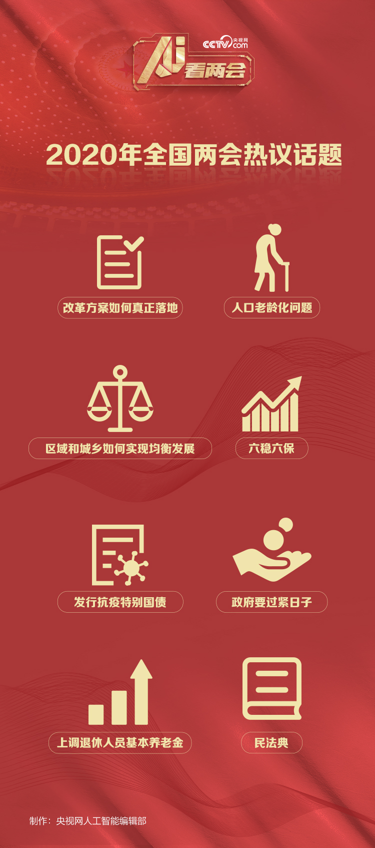 編者按:一年一度的全國兩會(huì)是我國政治生活中的大事,是人民參政議政的重要渠道,也是觀察中國的一扇窗口。每年全國兩會(huì)都備受國內(nèi)外矚目?倳浽趦蓵(huì)上說過哪些高頻詞?歷年政府工作報(bào)告都關(guān)注哪些領(lǐng)域?代表委員都討論了哪些議題?媒體和網(wǎng)友最關(guān)心哪些話題?央視網(wǎng)特別推出《AI看兩會(huì)》系列特稿,以人工智能和大數(shù)據(jù)的角度帶你解讀歷年兩會(huì)。