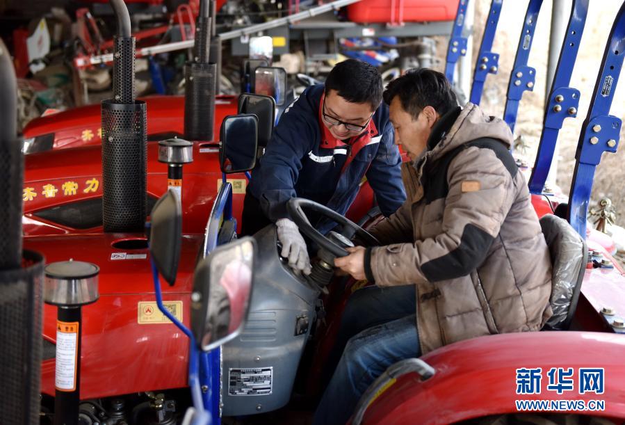 3月3日,河北省阜城縣農(nóng)民在一家農(nóng)機公司選購農(nóng)機。